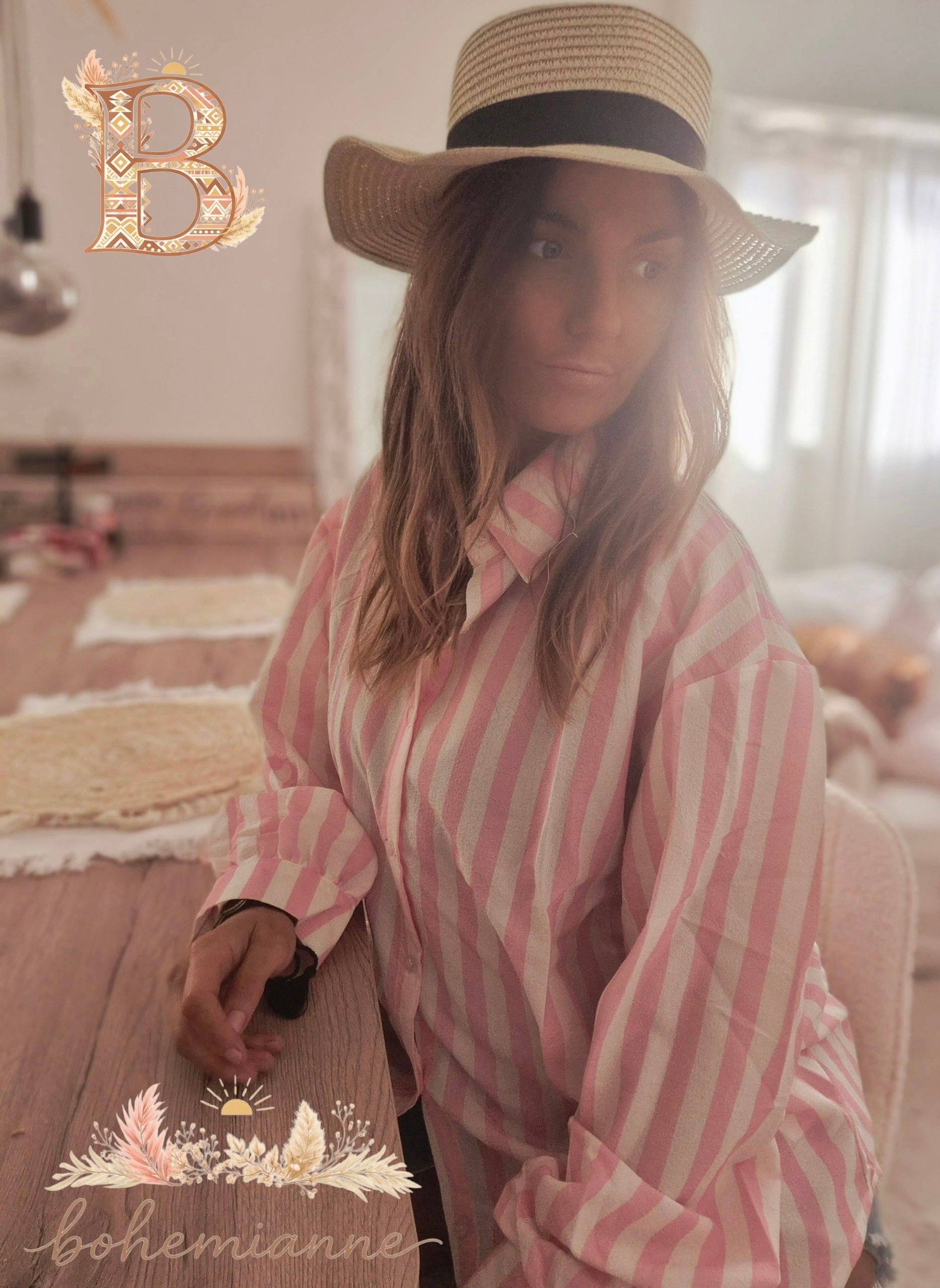 Apportez une touche de fraîcheur à votre garde-robe avec cette chemise longue bohème à grosses rayures rose et blanche.