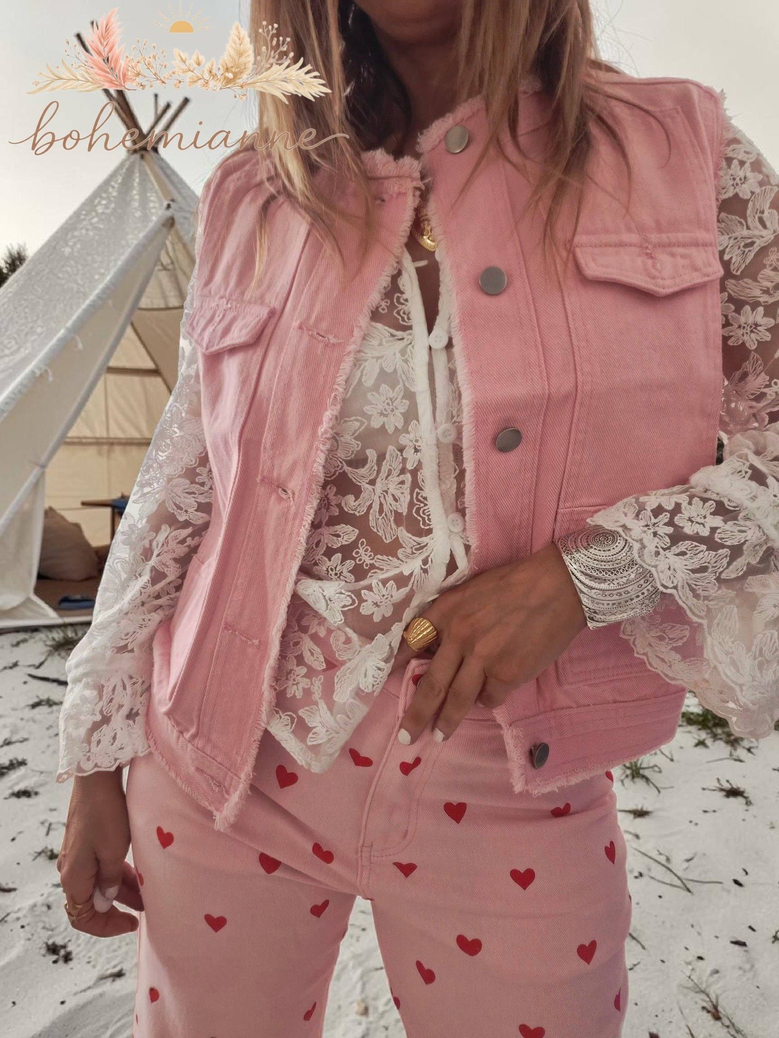 🌸 Gilet Sunset Venice rose denim