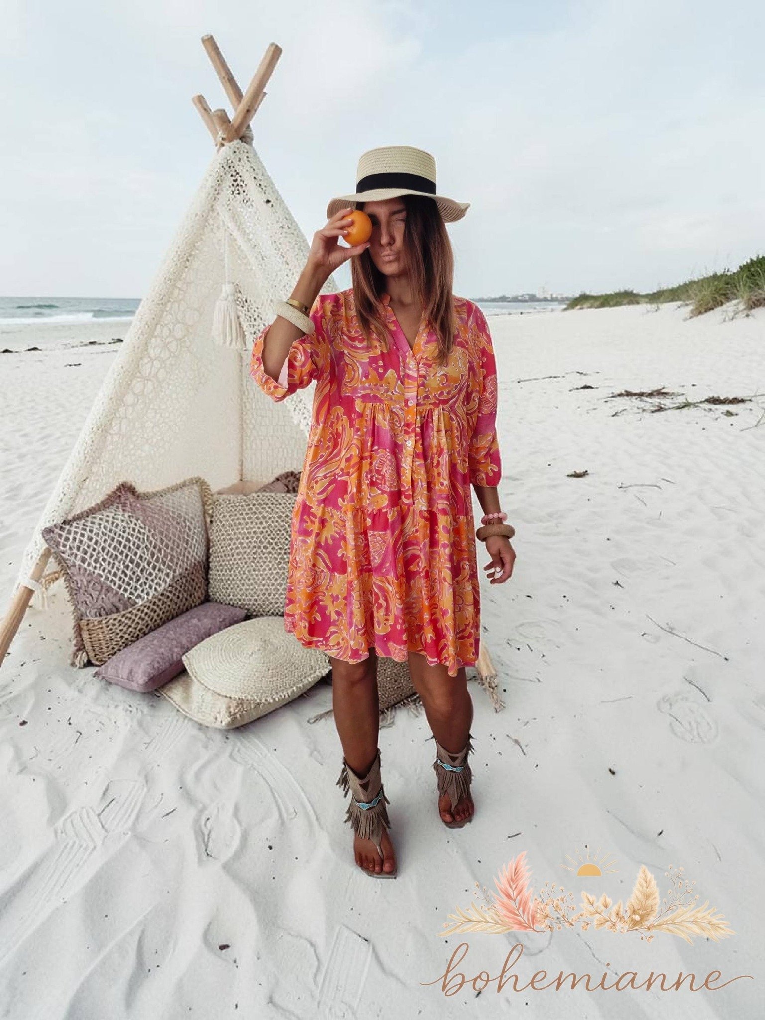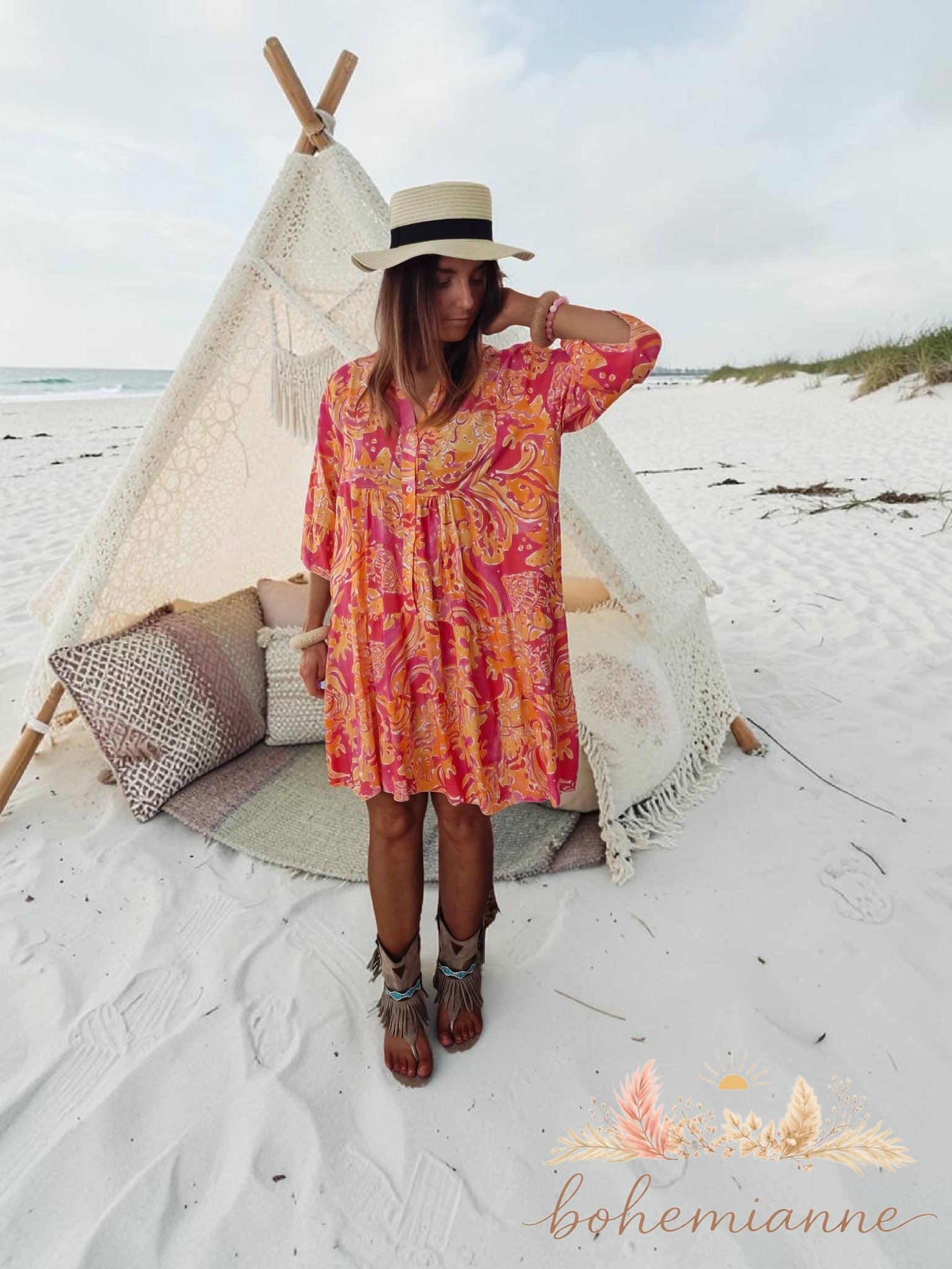 🌺 Laisse-toi emporter par l’énergie solaire de la robe West Coast Vibes, une pièce bohème aux couleurs vibrantes inspirées des couchers de soleil californiens.